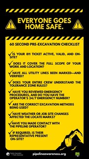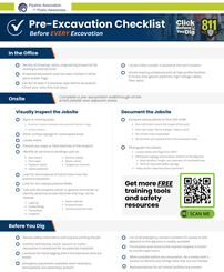 Our Pre-Excavation Checklist can be used to guide safe work practices. Download, print and distribute to your work crews!